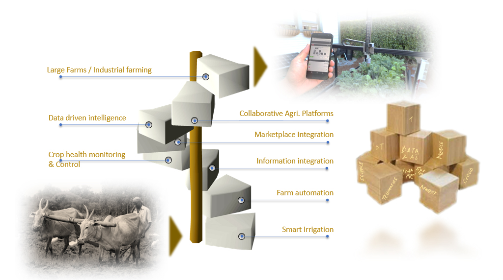 Bringing IT advantage to the grass roots of agriculture, horticulture, floriculture, dairy & poultry sector is one of the main focus areas of our vision. Closely engaging with farmers to understand their problems, collaborating with SMEs in respective domains and bringing our IT expertise to the table in a step-by-step manner is our approach to transform and modernize these sectors.
